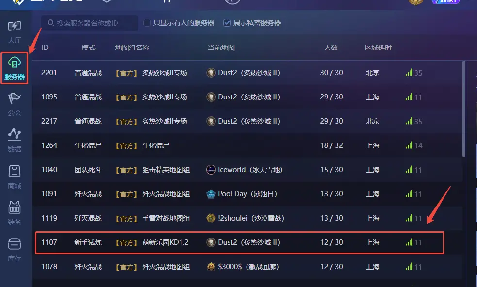 2. 从服务器列表进入